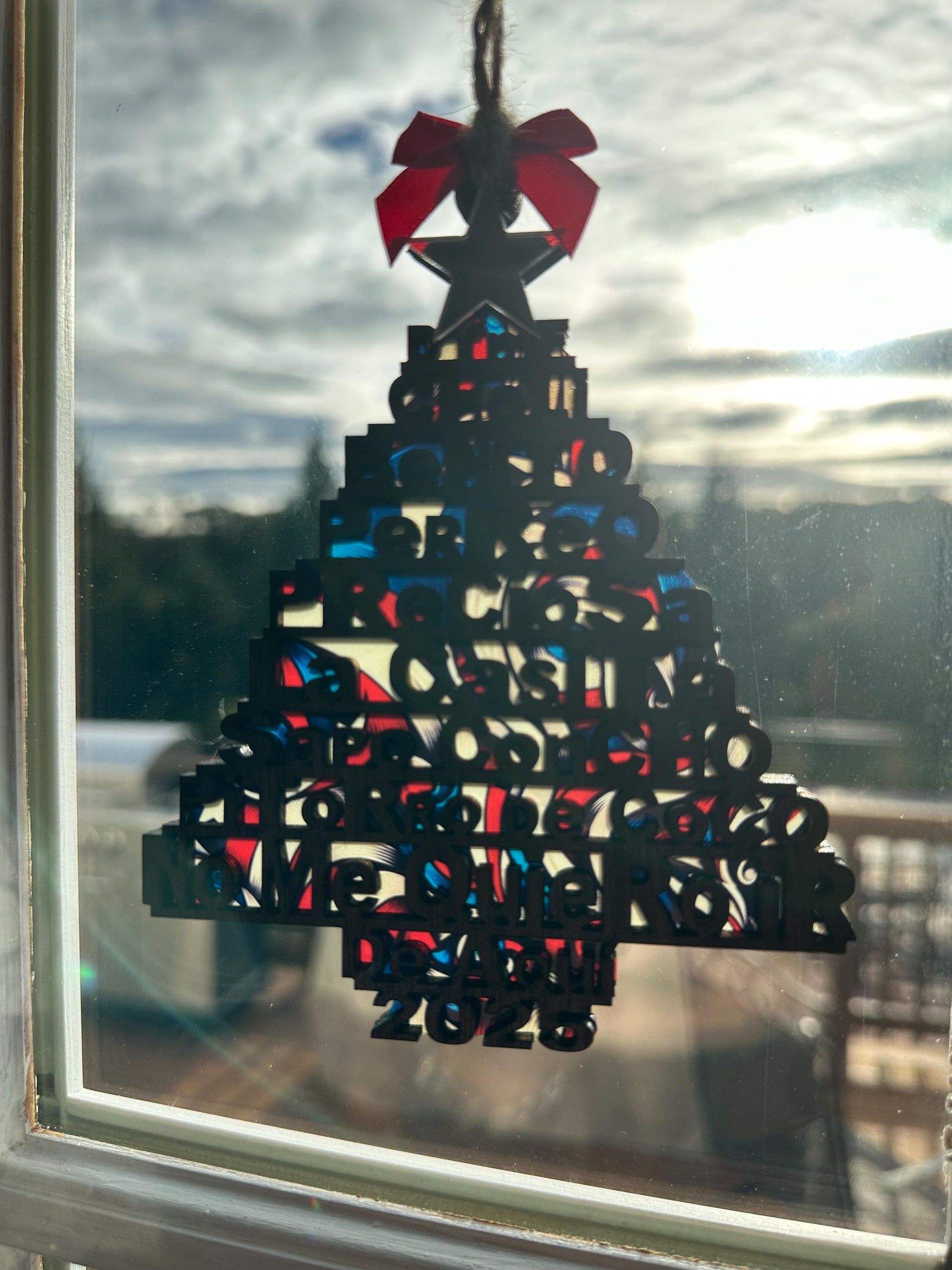This doubles as a suncatcher—light shines through highlighting the red white and blue of the Puerto Rican flag.