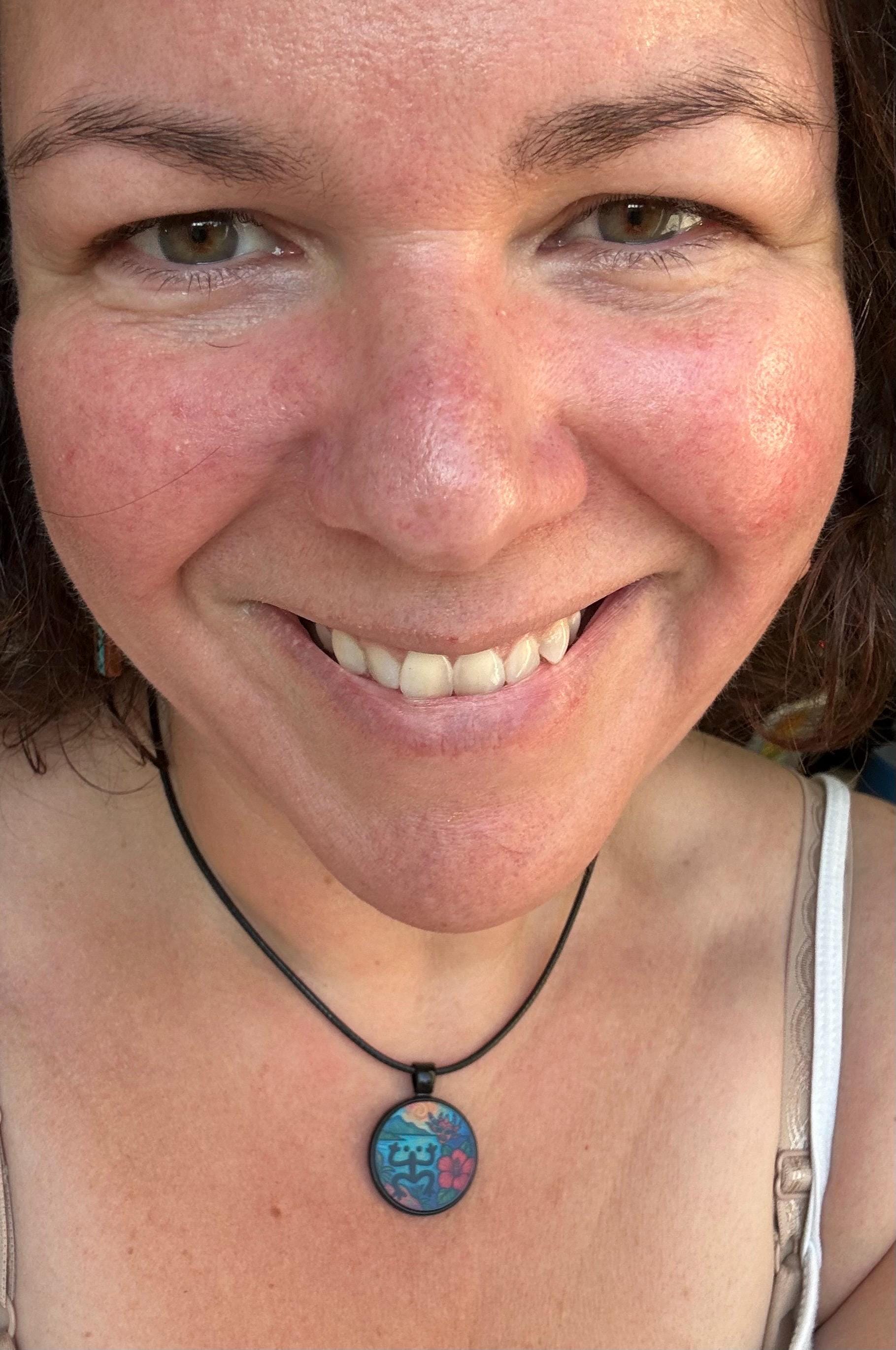 This vibrant necklace celebrates the beauty and spirit of Puerto Rican culture with a striking design printed on clear acrylic. The pendant features a rich, colorful scene that includes a Taino coqui symbol, a vejigante mask, tropical mountains, and a bold red hibiscus flower—symbols of heritage, nature, and tradition. Set in a sleek black metal bezel and suspended from a matching linen cord, this piece is both modern and meaningful. Whether worn as a tribute to the island or as a unique statement piece, it carries the warmth and pride of Puerto Rico close to your heart.