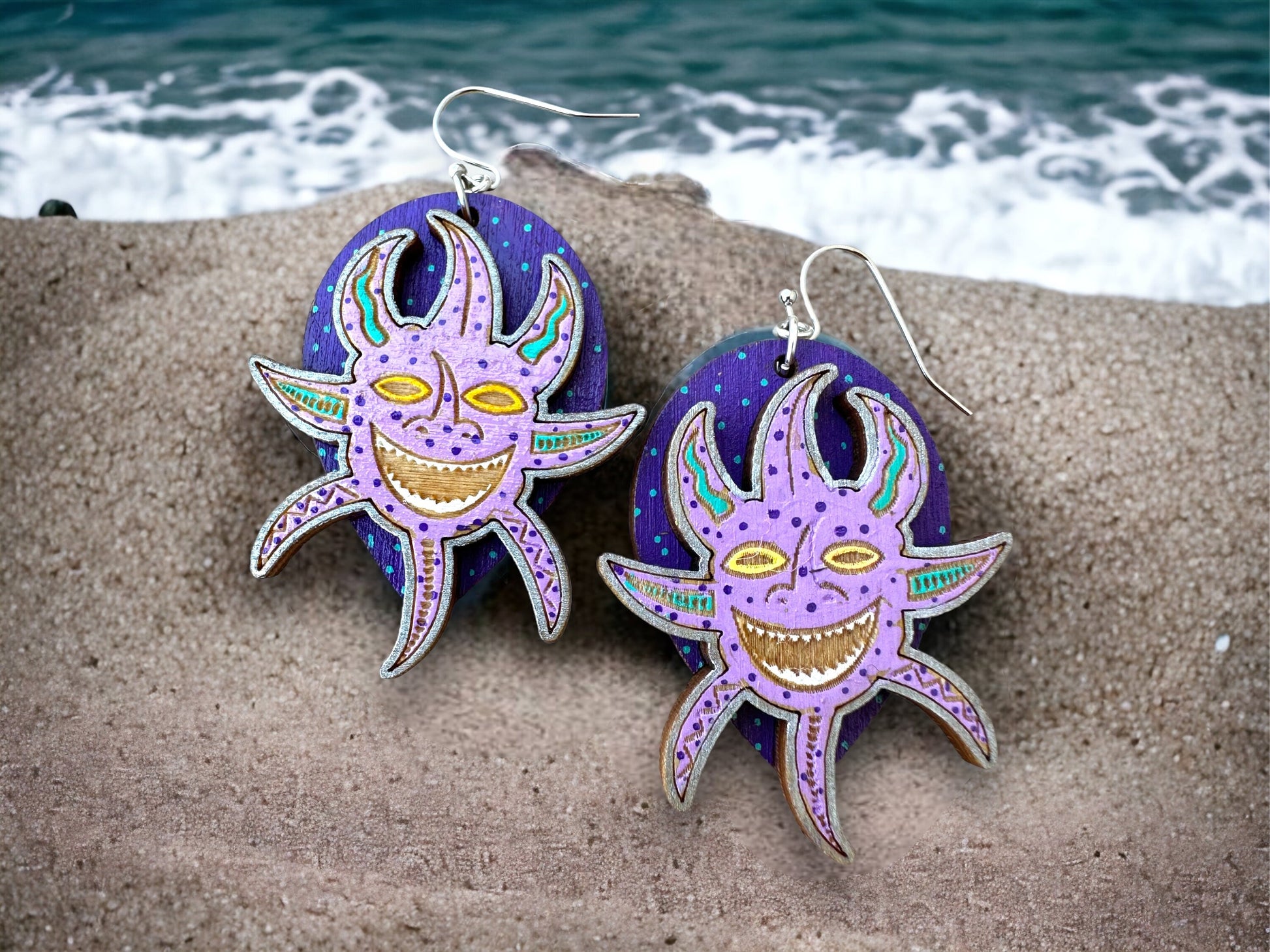Handpainted Vejigante layered Earrings: Puerto Rican Carnival mask Dangles
