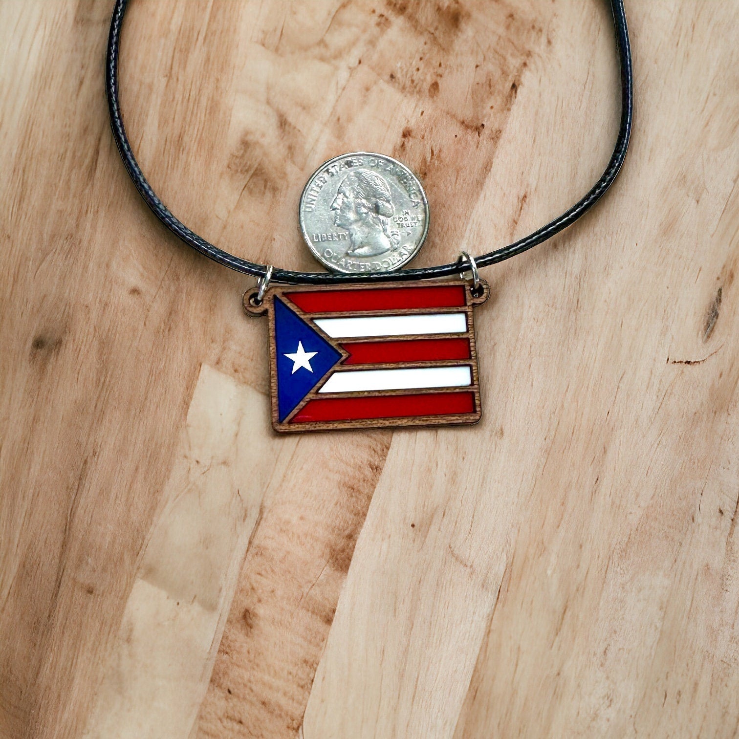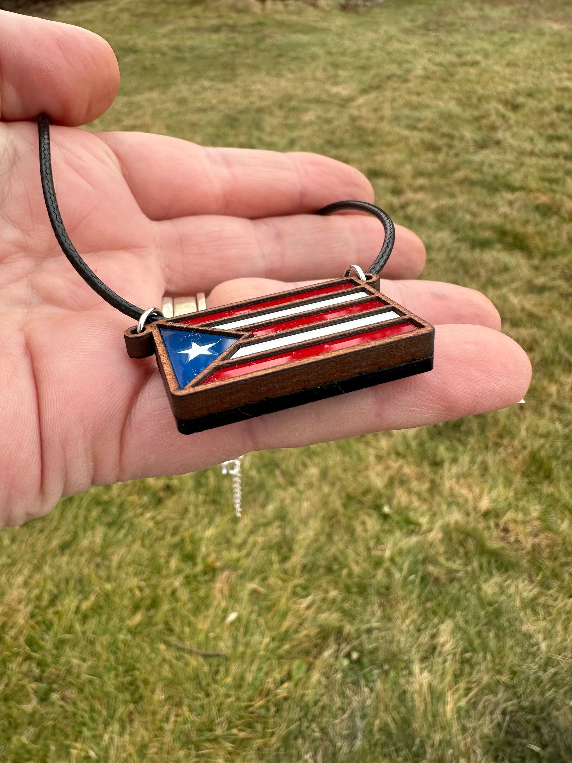 Puerto Rican Flag Pendant: Layered Wood & Acrylic Boricua Necklace