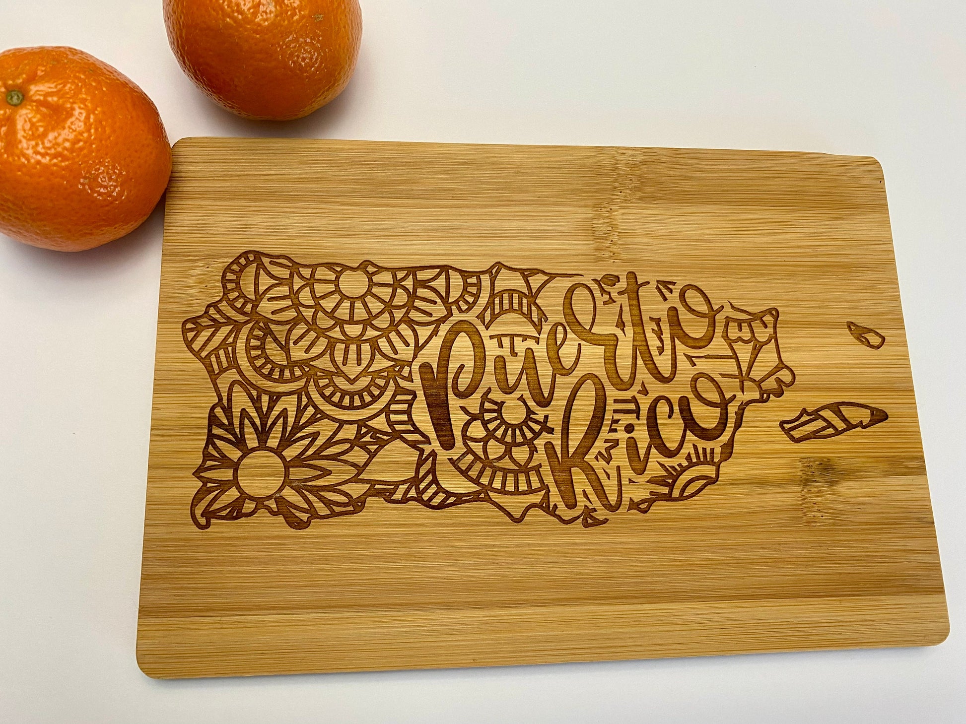 Puerto Rico Bamboo Cutting Board: Engraved Mandala Serving Board