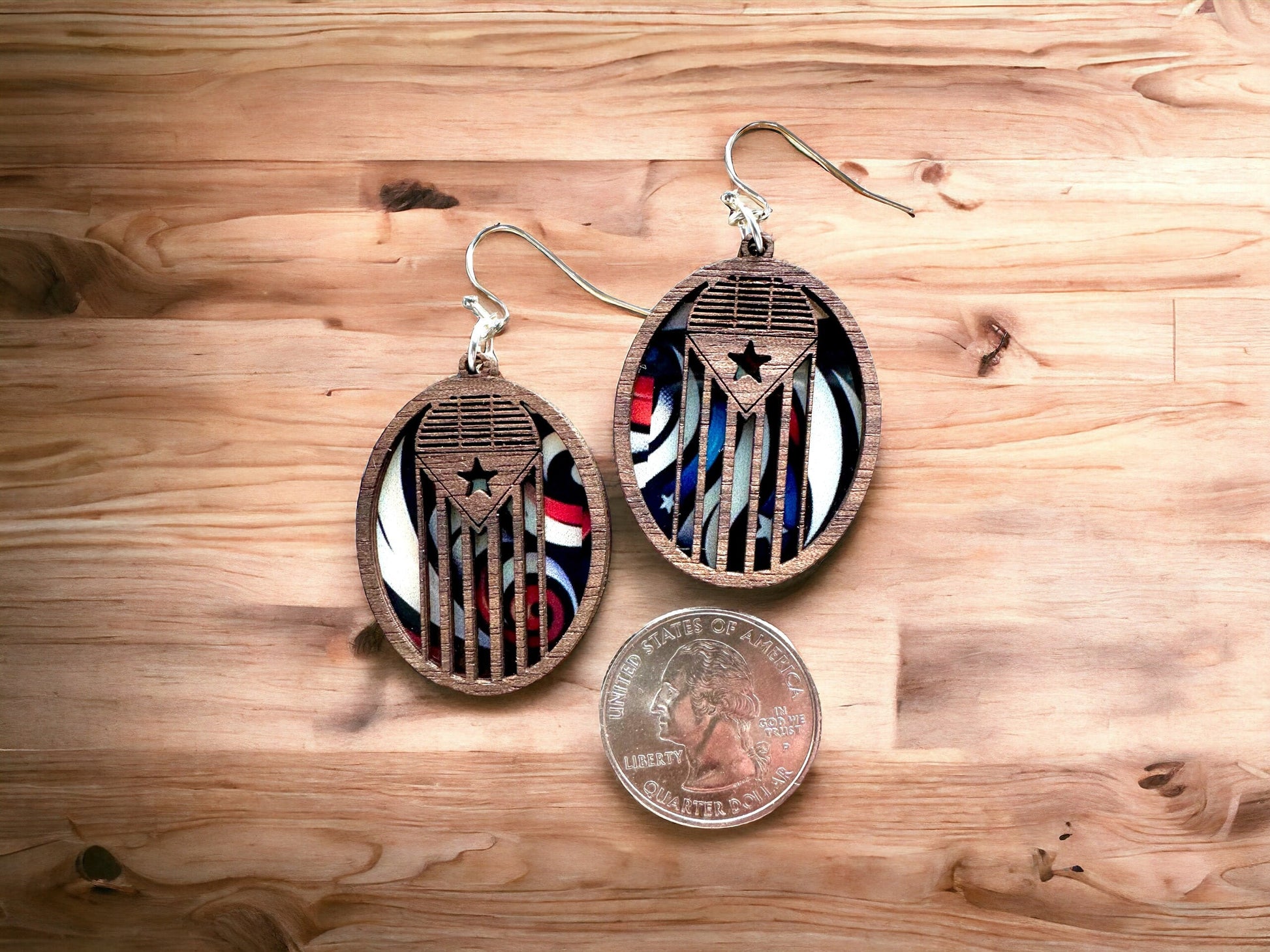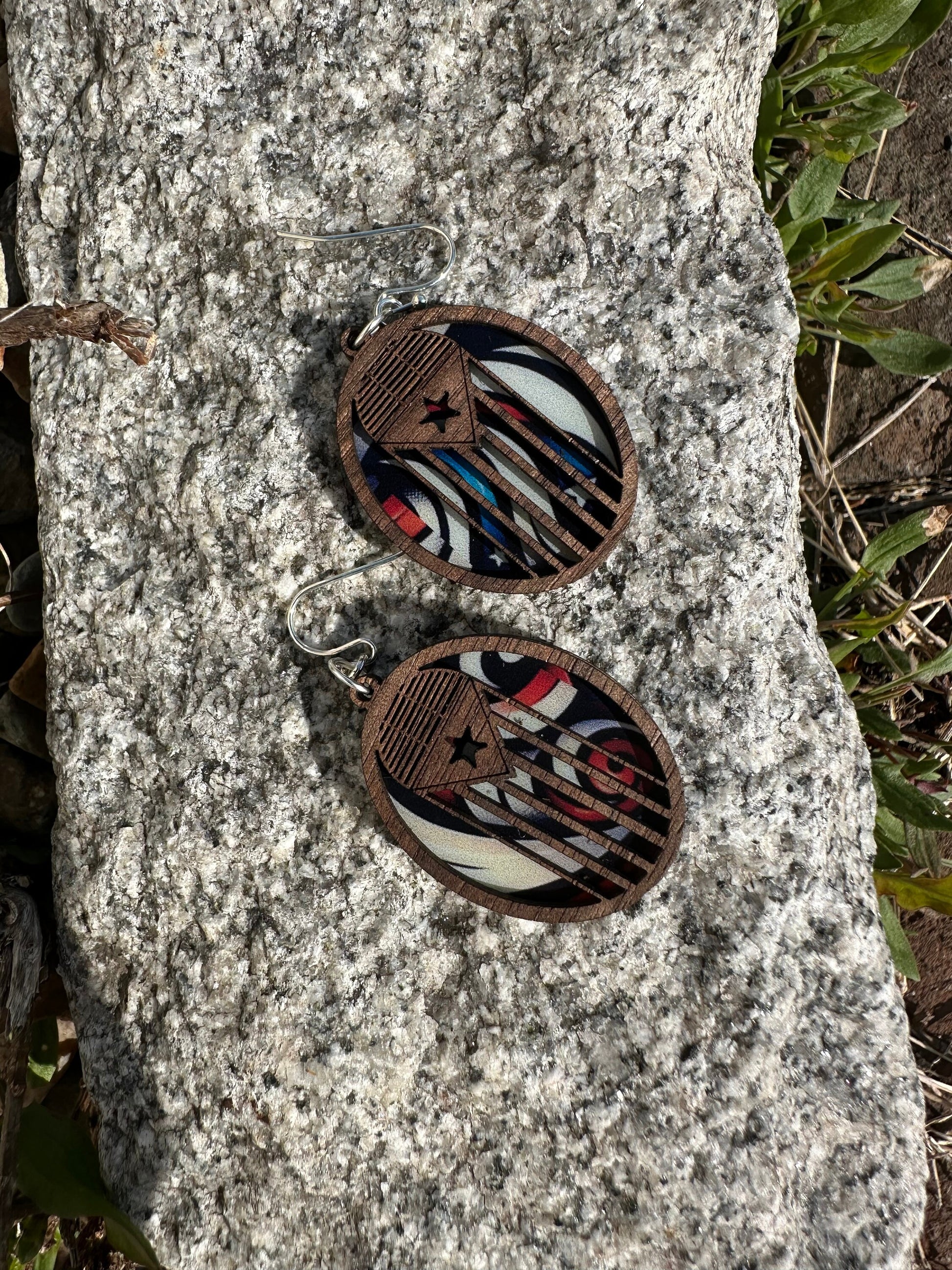 Puerto Rico Flag Earrings: Walnut Wood Old San Juan albizu campos Door Design, stained glass look