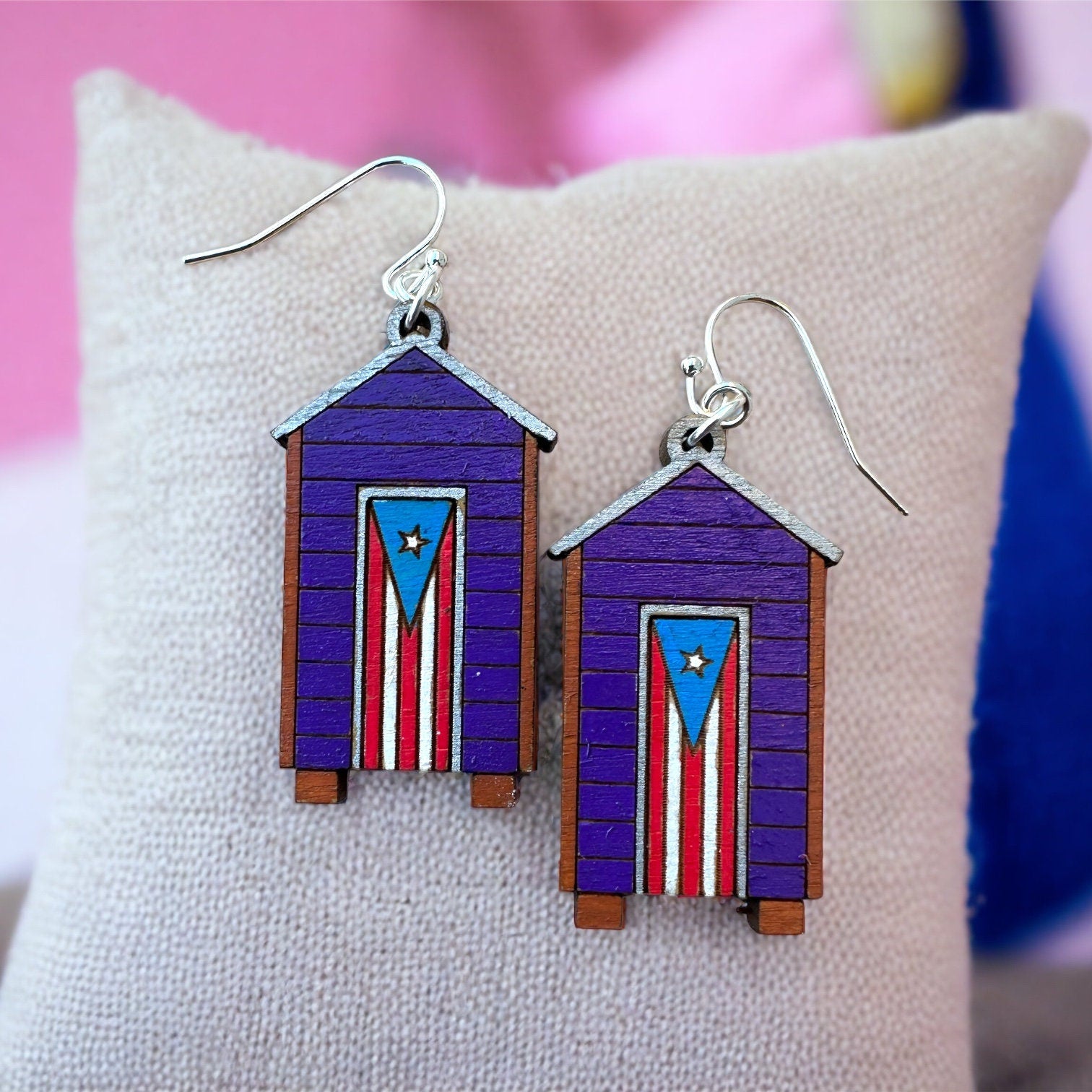 Puerto Rico Flag Wooden casa del campo Earrings: Handpainted Casita Dangles