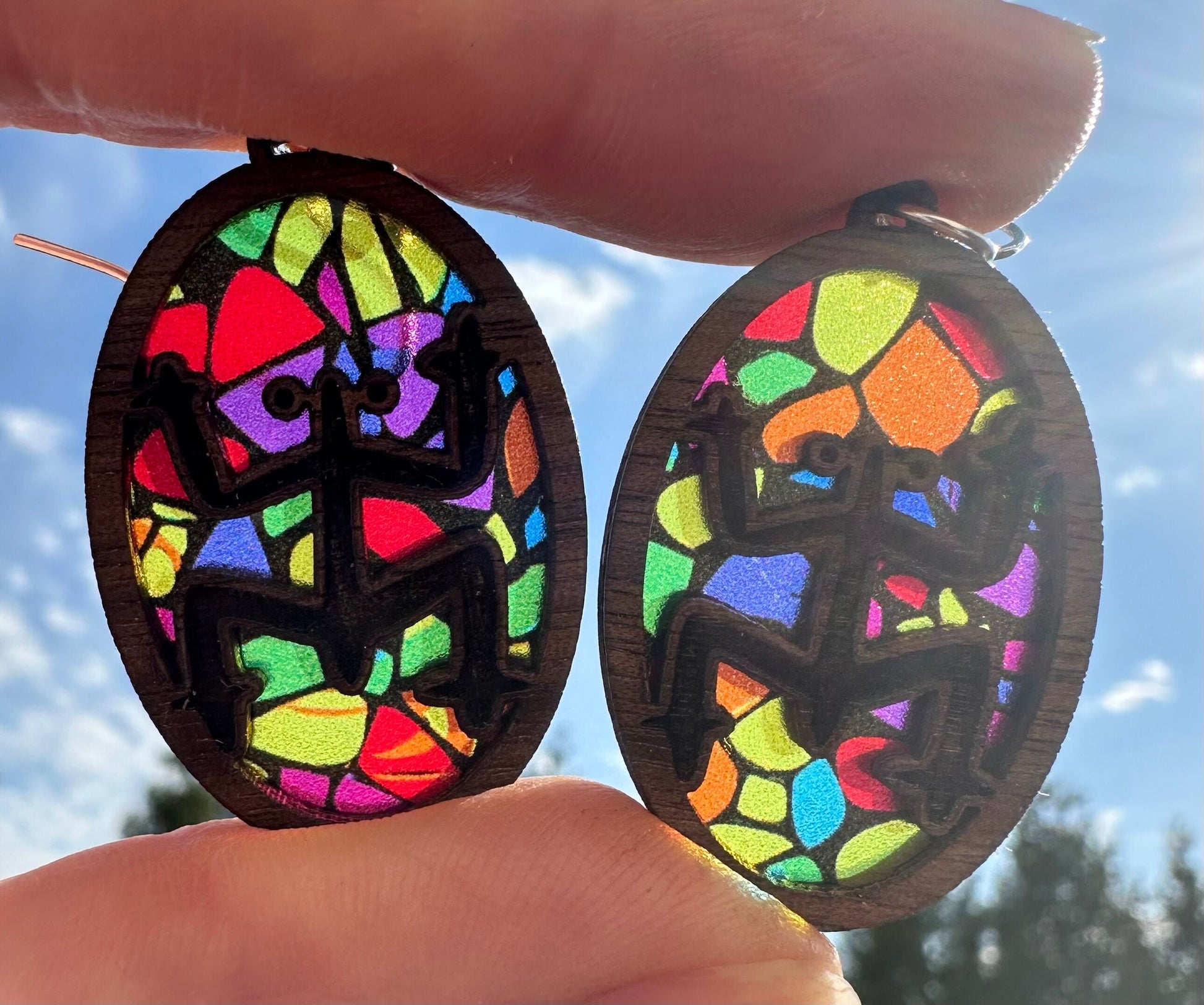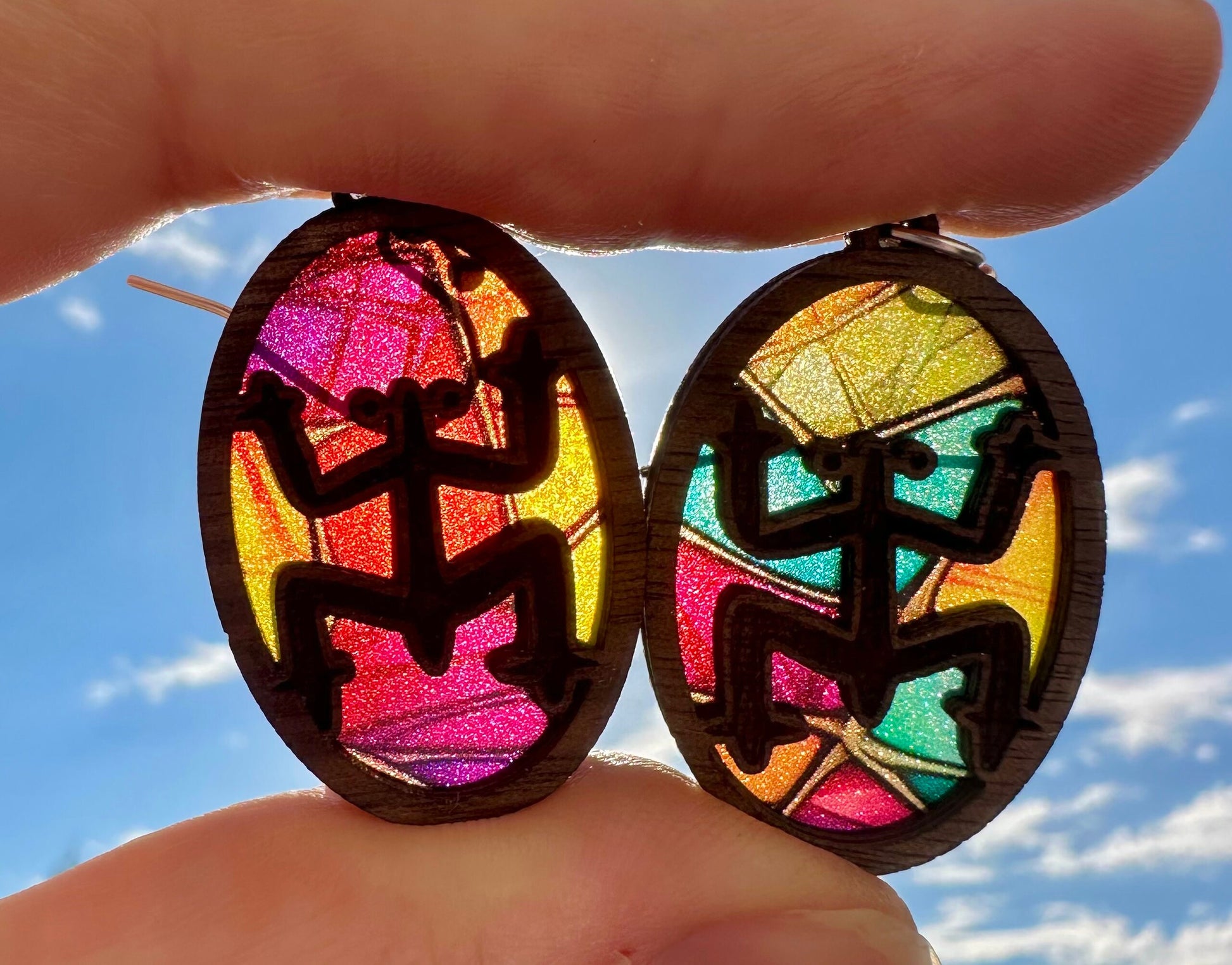Introducing our exquisite Taino-inspired Wooden stained glass look earrings, a stunning fusion of artistry and culture that adds a touch of vibrant elegance to your look. Crafted with care, these unique earrings are a testament to craftsmanship and creativity.