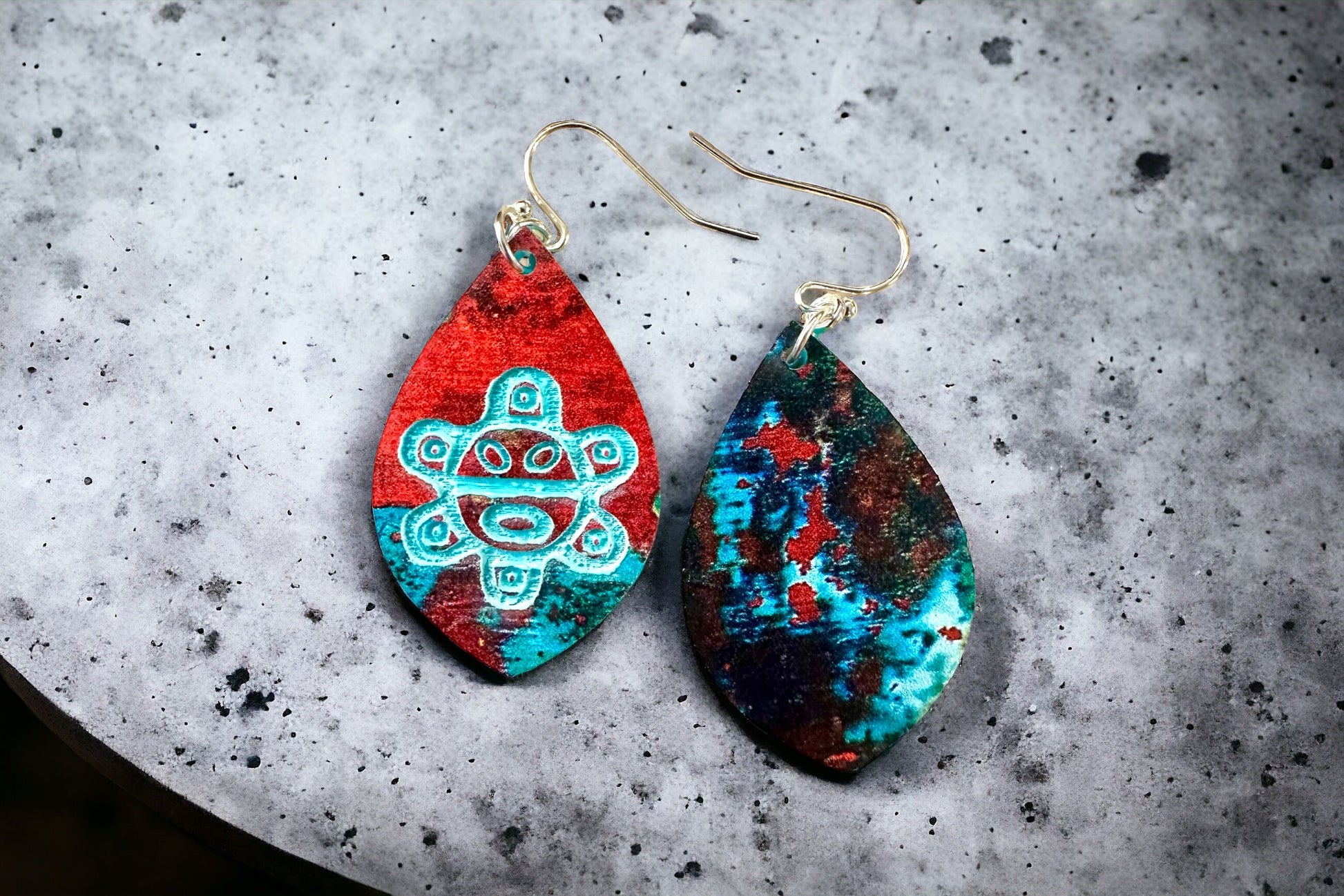 Taino Coqui Earrings: Copper Turquoise Look, Puerto Rican Symbol Dangles