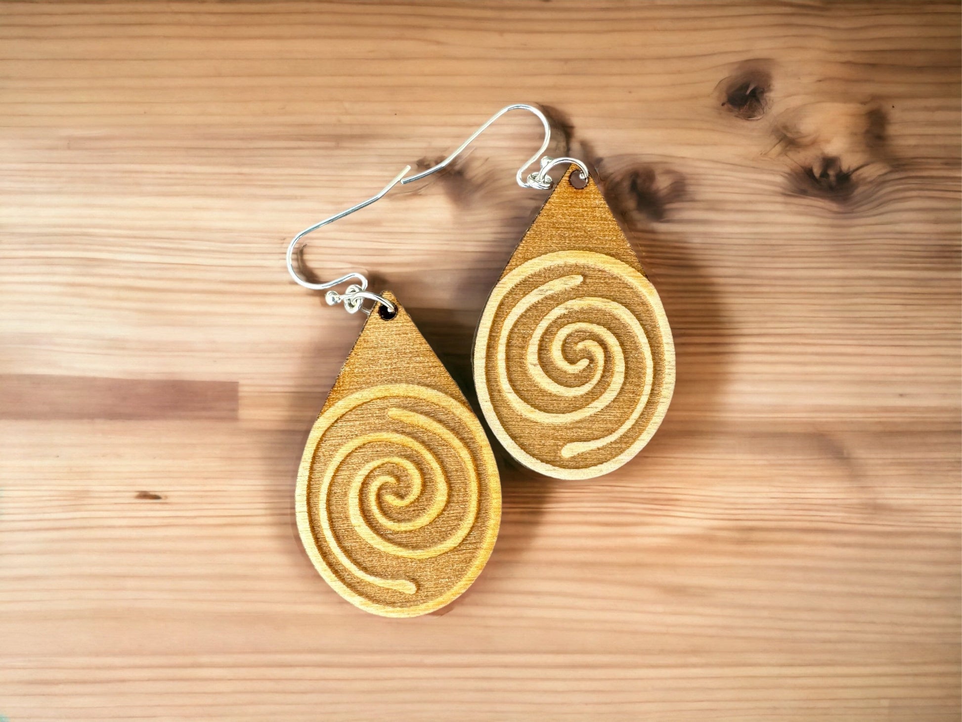 Taino Water Symbol Wood Earrings: Laser Engraved Tropical Jewelry