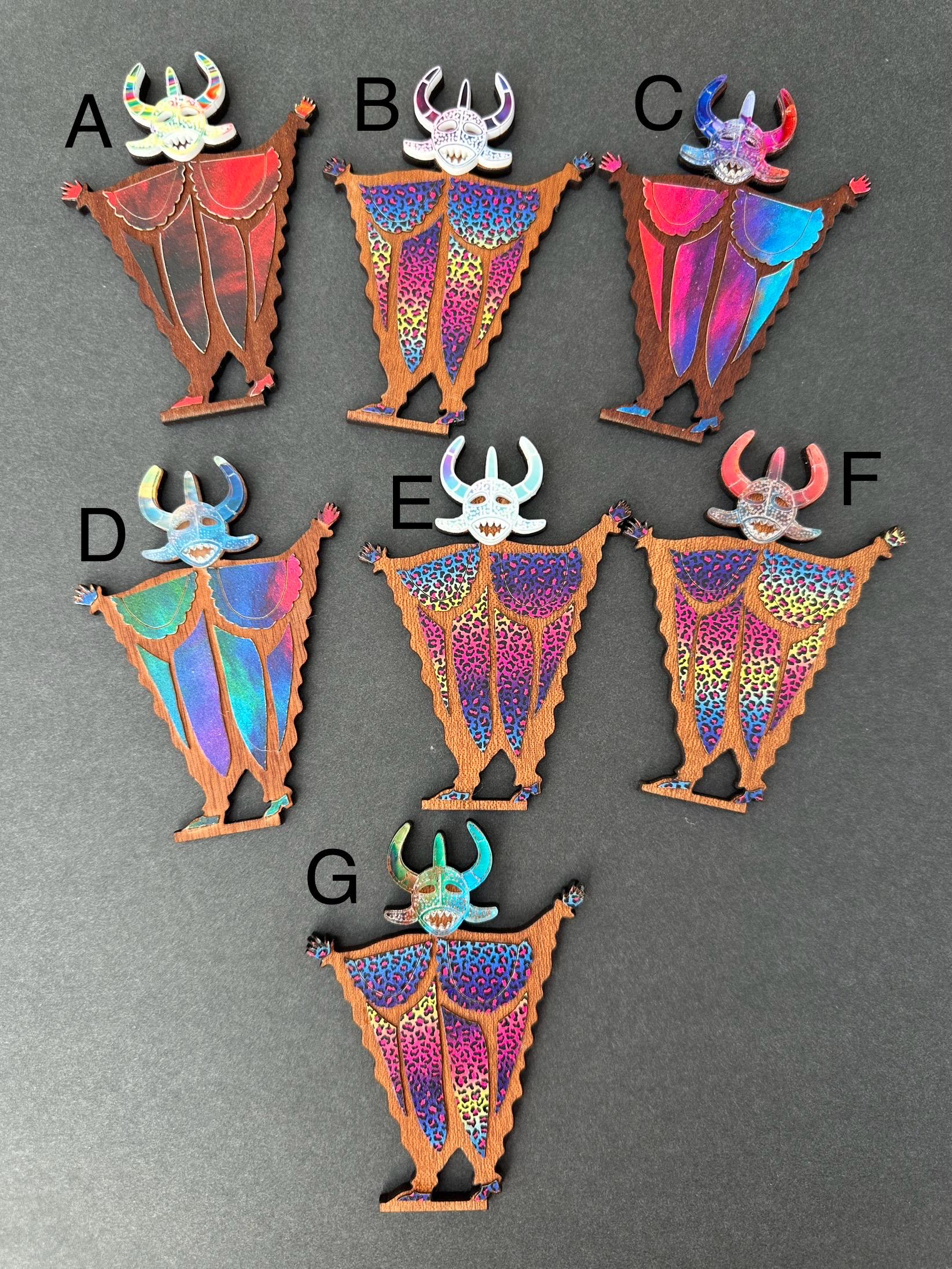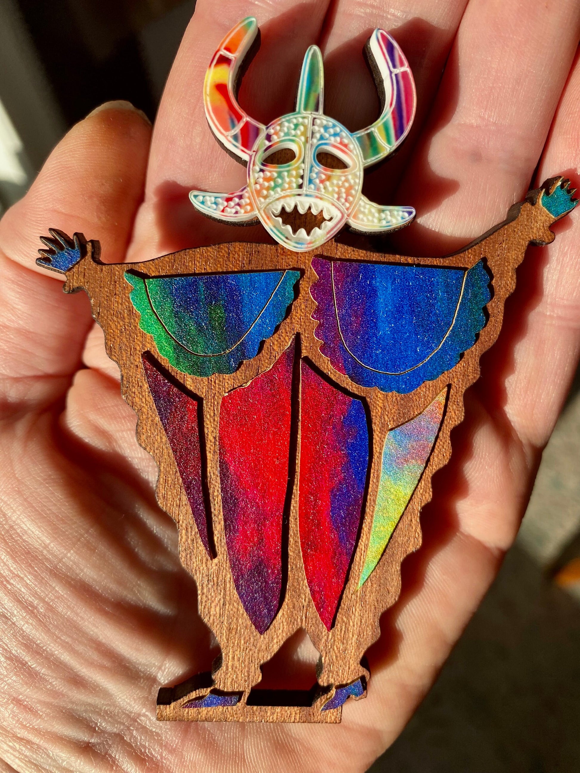 This tiny vejigante figurine is a true work of art, featuring an original design cut from sapele or mahogany wood and finished with colorful accents that bring it to life. The colorful acrylic masks add an extra touch of vibrancy, capturing the essence of the traditional vejigante costume worn during the Carnaval de Ponce celebration in Puerto Rico.