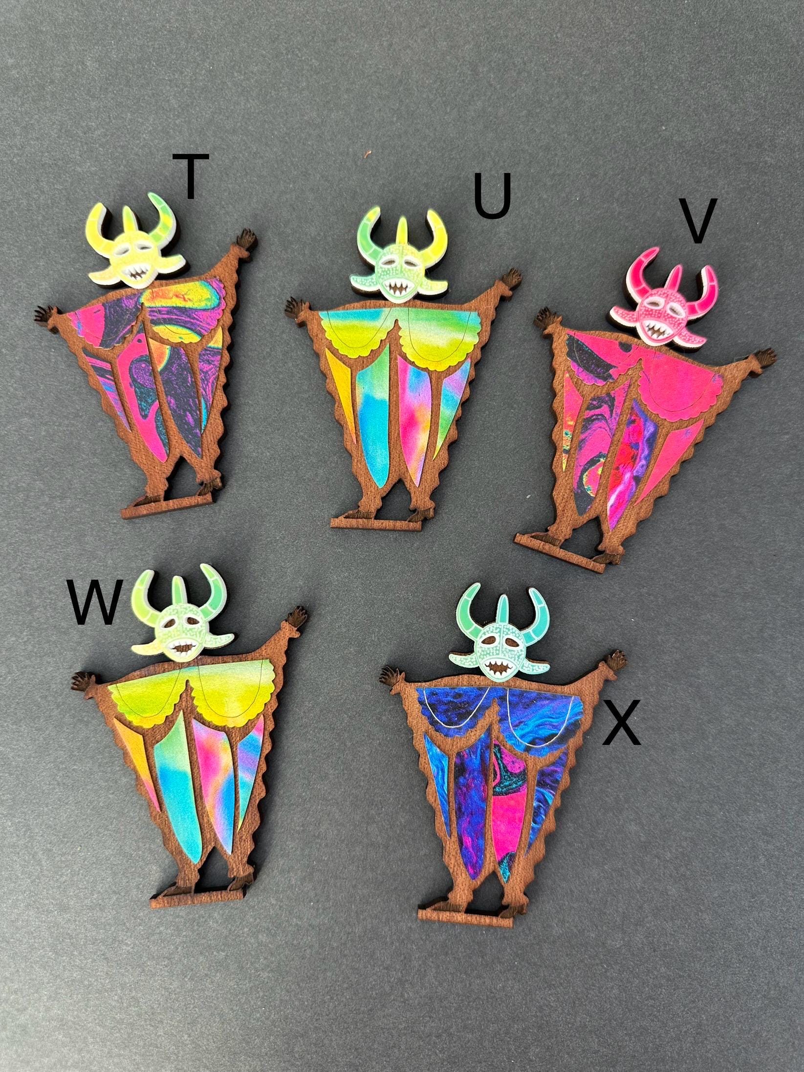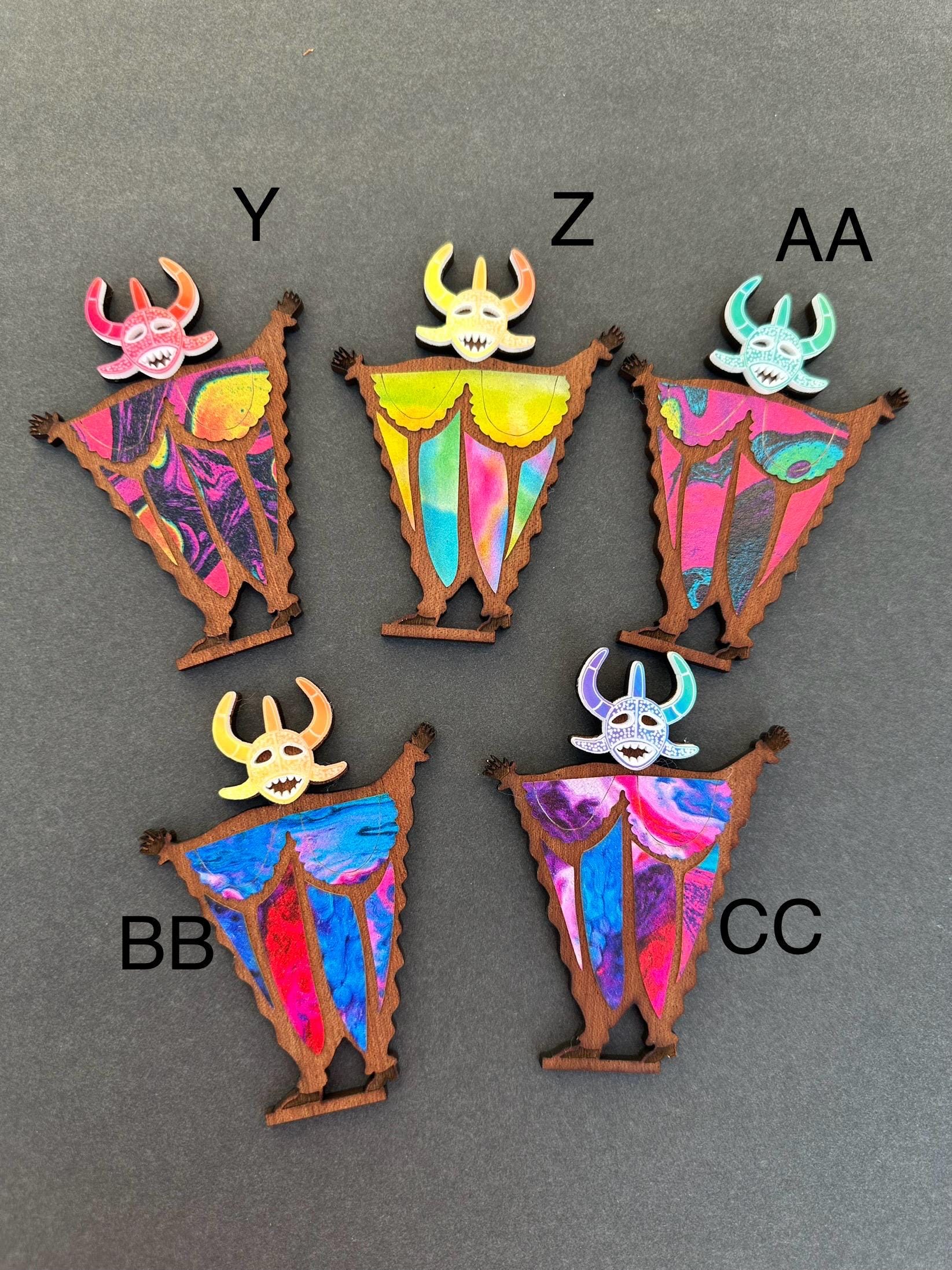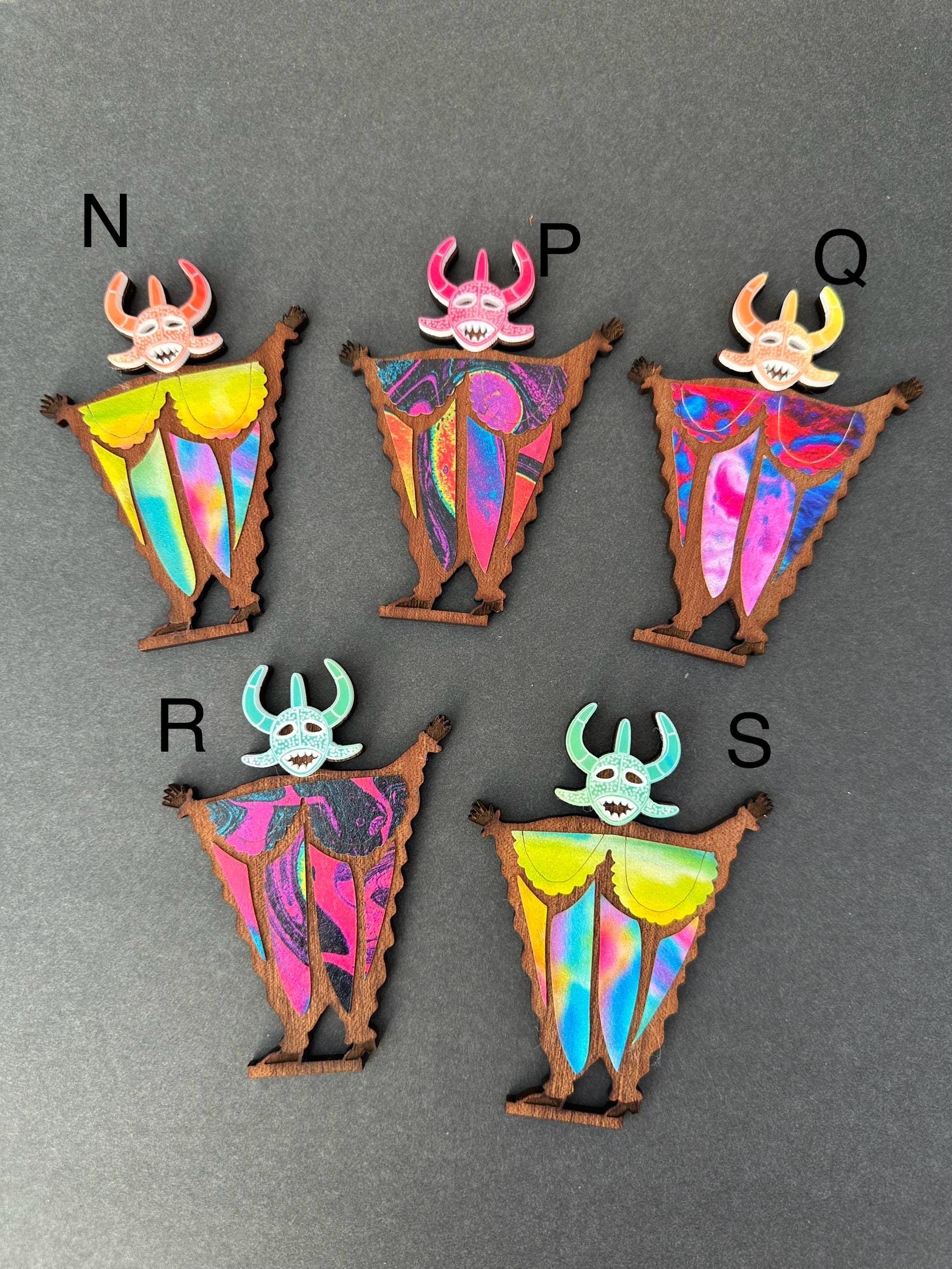Tiny Vejigante Figurine: Colorful Puerto Rican Carnival wood Statue, shelf sitter, desk art