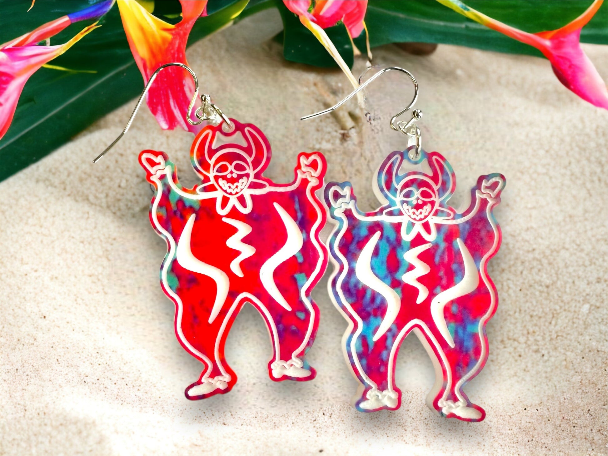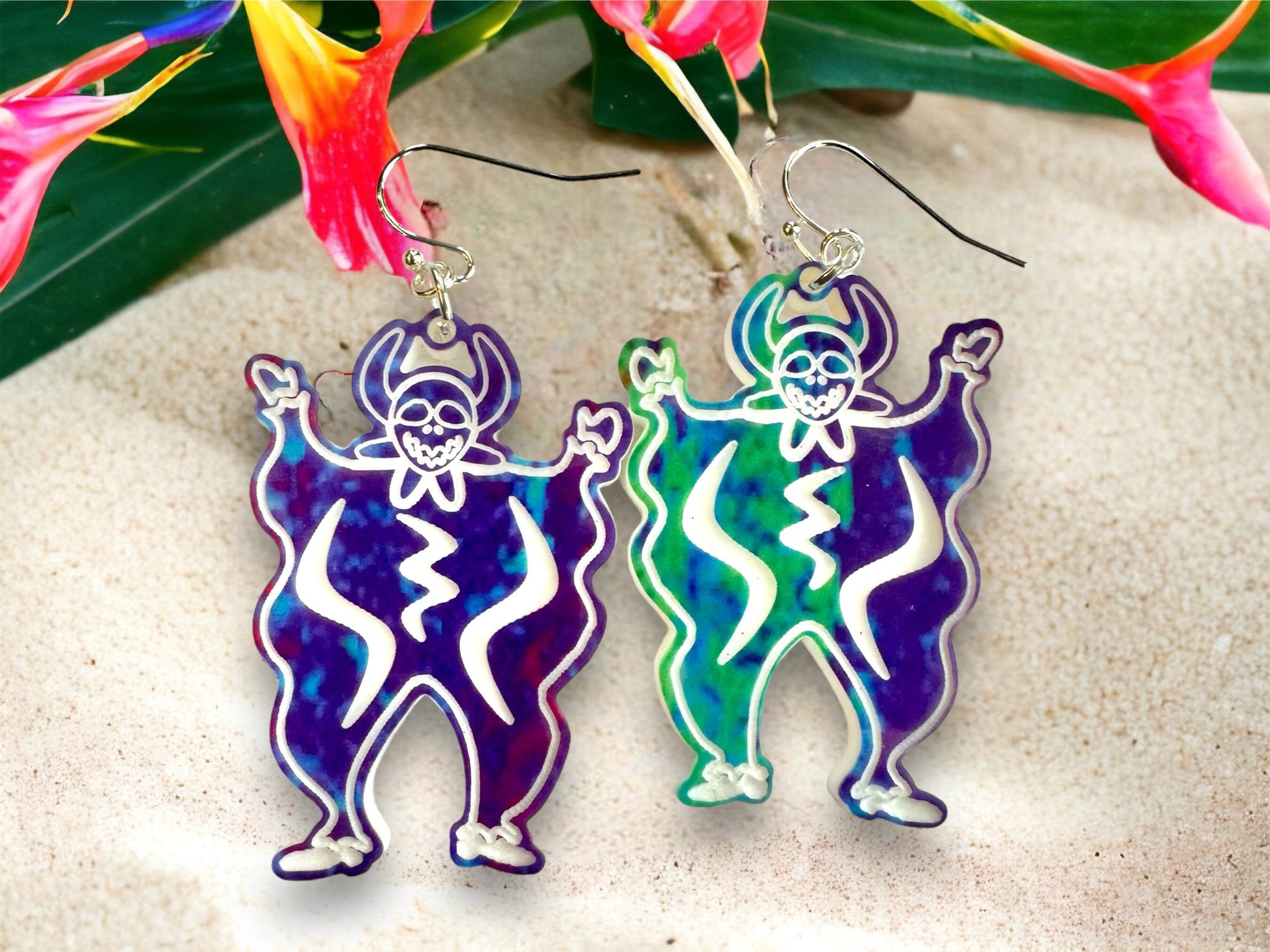 Introducing our captivating collection of one-of-a-kind tiny Vejigante statue earrings, crafted to embody the vibrant spirit and cultural significance of Puerto Rico’s traditional folklore. These exquisite earrings showcase the essence of the Vejigante tradition through their vibrant, colorful acrylic design.