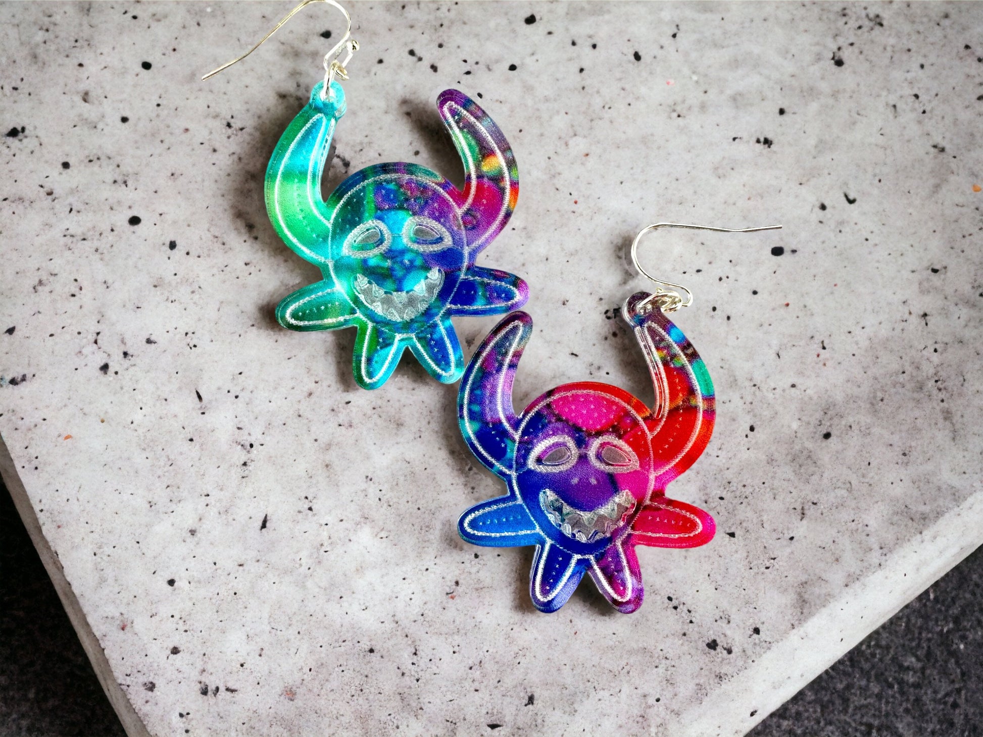 The colorful acrylic vejigante mask earrings are a vibrant and unique work of art that pay tribute to the rich cultural history of Puerto Rico. Each pair of earrings is crafted from durable acrylic and features a colorful vejigante mask design, complete with intricate detailing and bold, eye-catching colors.