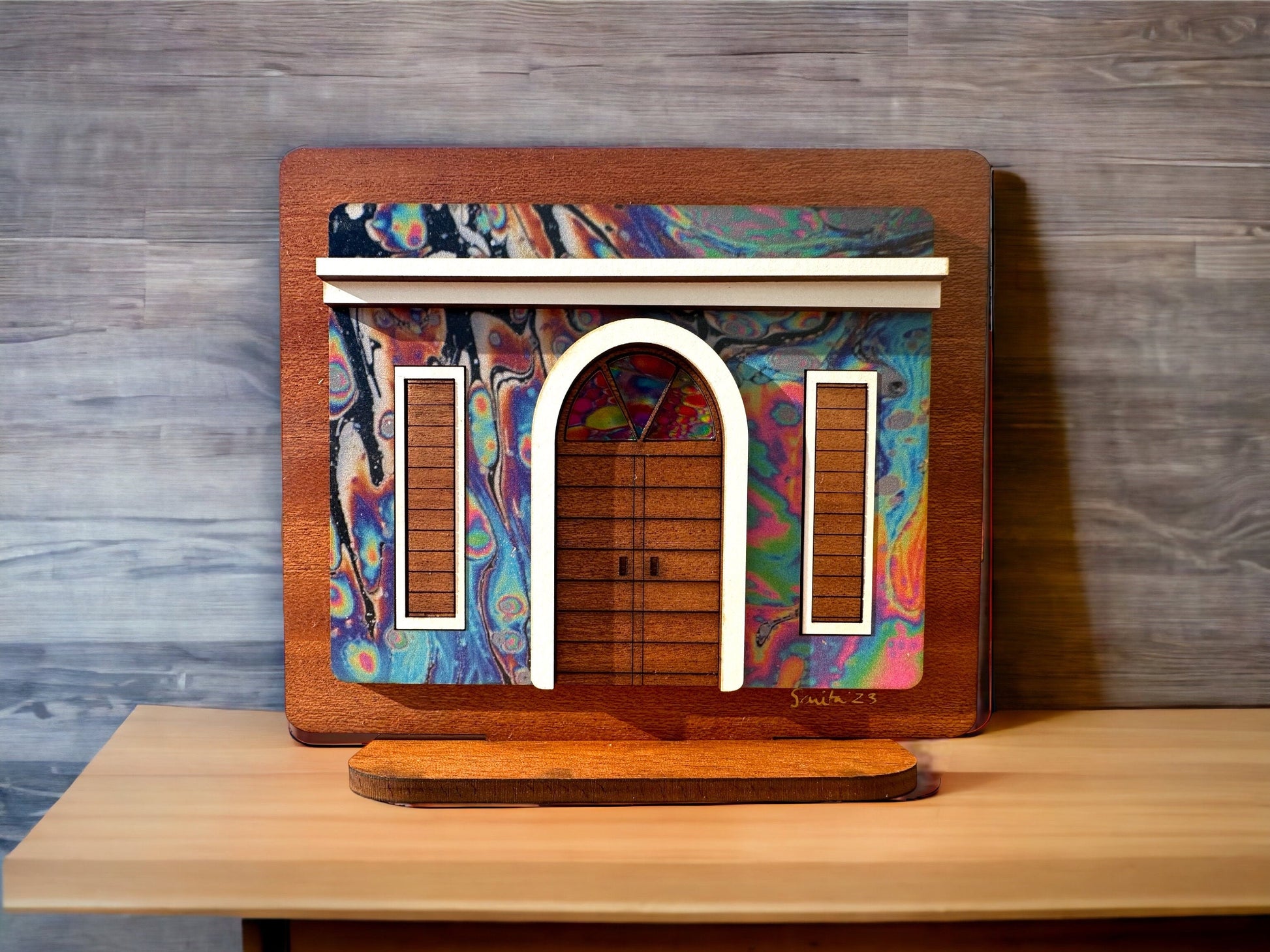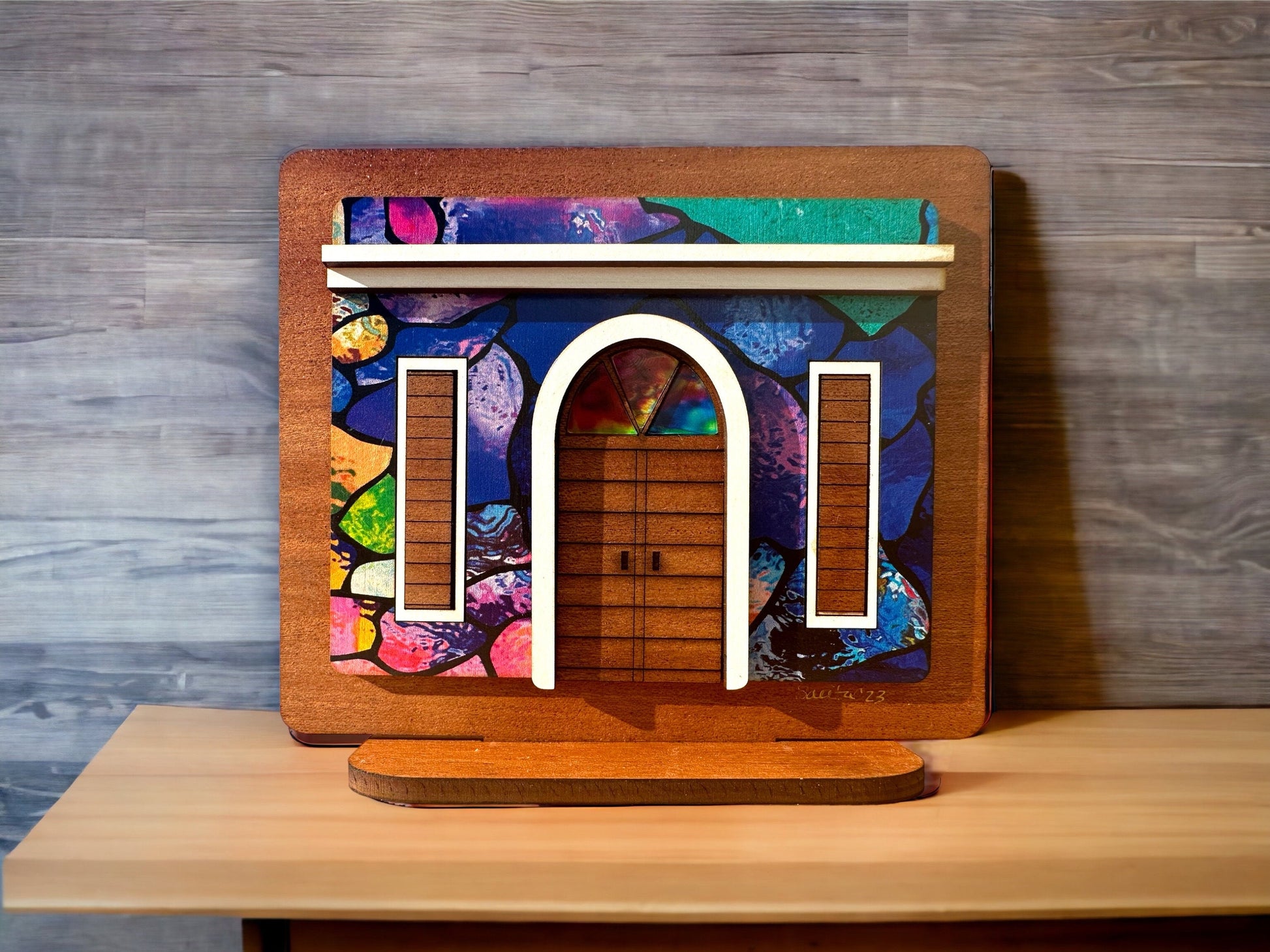 I am currently working in themes. My recent work has featured the architecture of Puerto Rico, specifically Old San Juan, I have designed this piece to represent houses that can be found in Viejo San Juan. I have included cut acrylic to mimic the stain glass used above windows and doors.